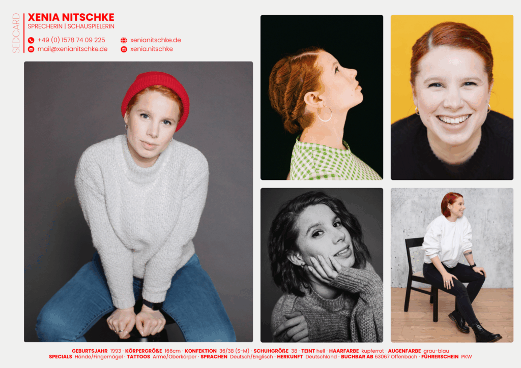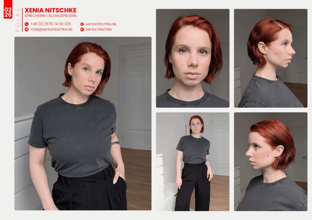 Gerne nehme ich bei Bedarf jederzeit ein kurzes E-Casting auf oder erstelle tagesaktuelle Polas.